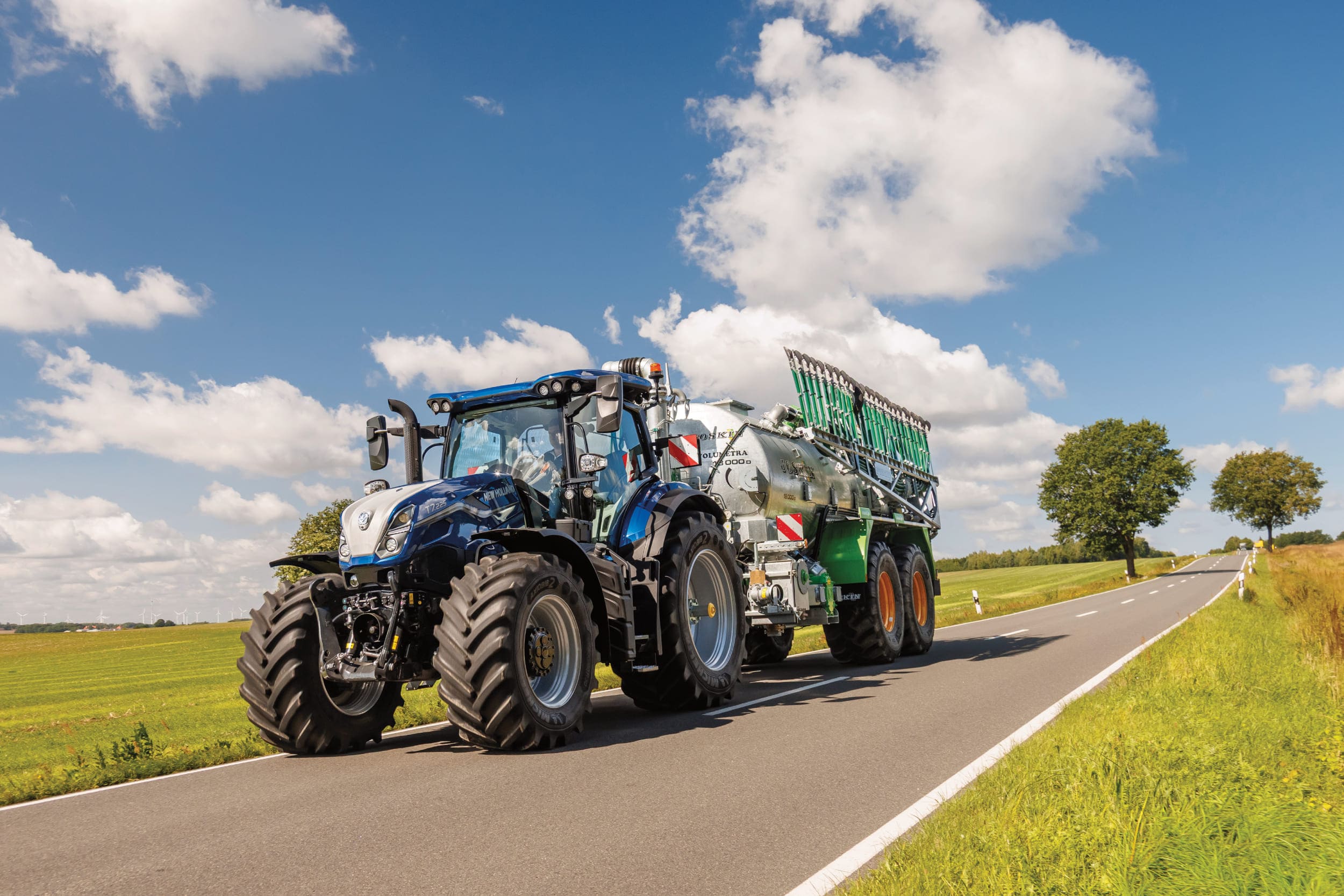 En la cabecera, lo normal es frenar. Con el T7 SWB, lo natural es seguir. El nuevo eje delantero —con control avanzado que se adelanta al terreno— mantiene el tractor estable en curva y dócil en su entrada. El resultado se nota en lo pequeño: un giro que se cierra antes y menos correcciones. Ese 17% que recorta el diámetro de giro no es una cifra: es el remolque que entra sin pelea, la pala que cae justo donde la quieres y una jornada que avanza sin sobresaltos.